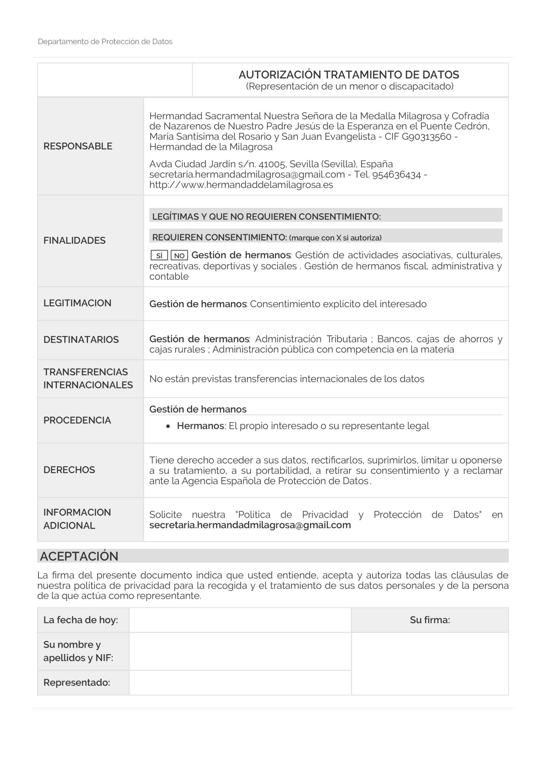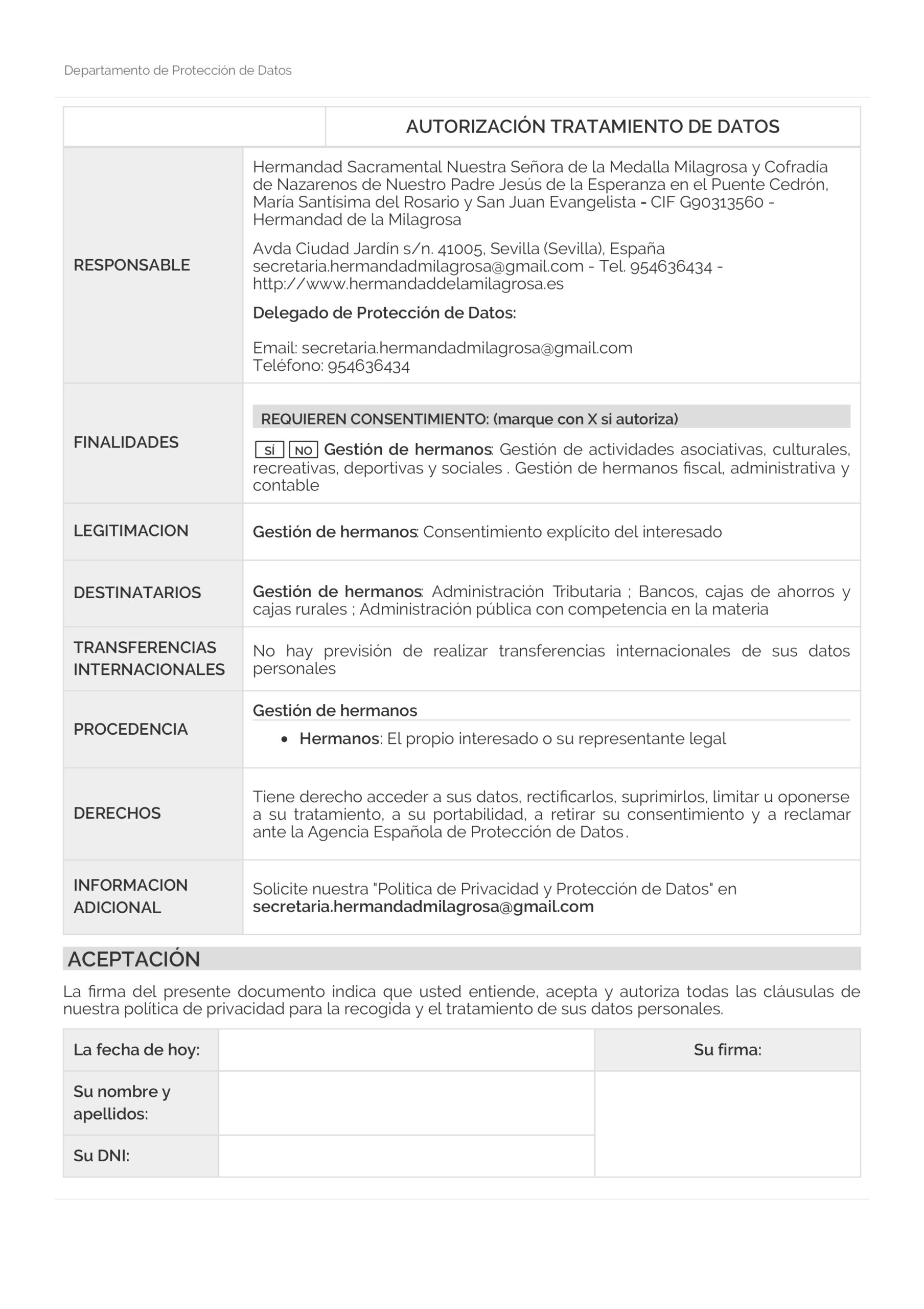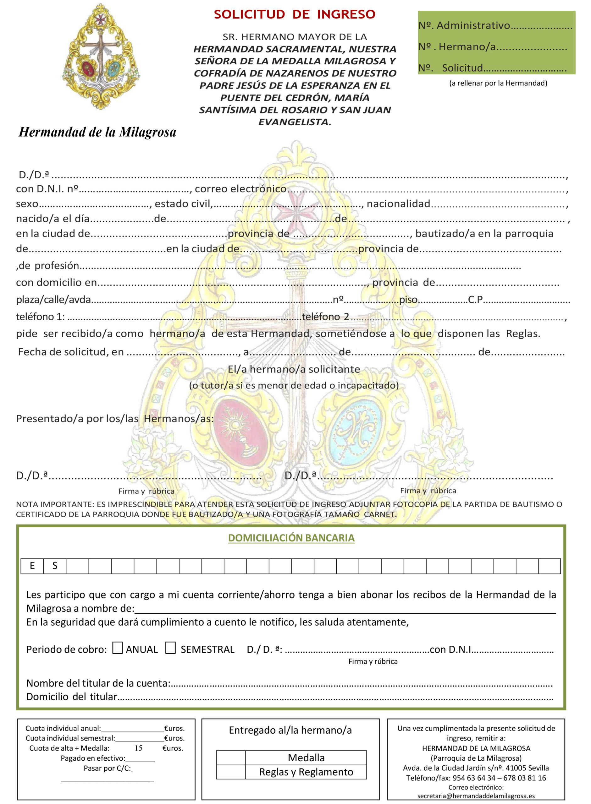 El pago de las cuotas se gestiona mediante cuenta bancaria, y en dicha cuota ya está incluida la papeleta de sitio para la Estación de Penitencia del Sábado de Pasión.